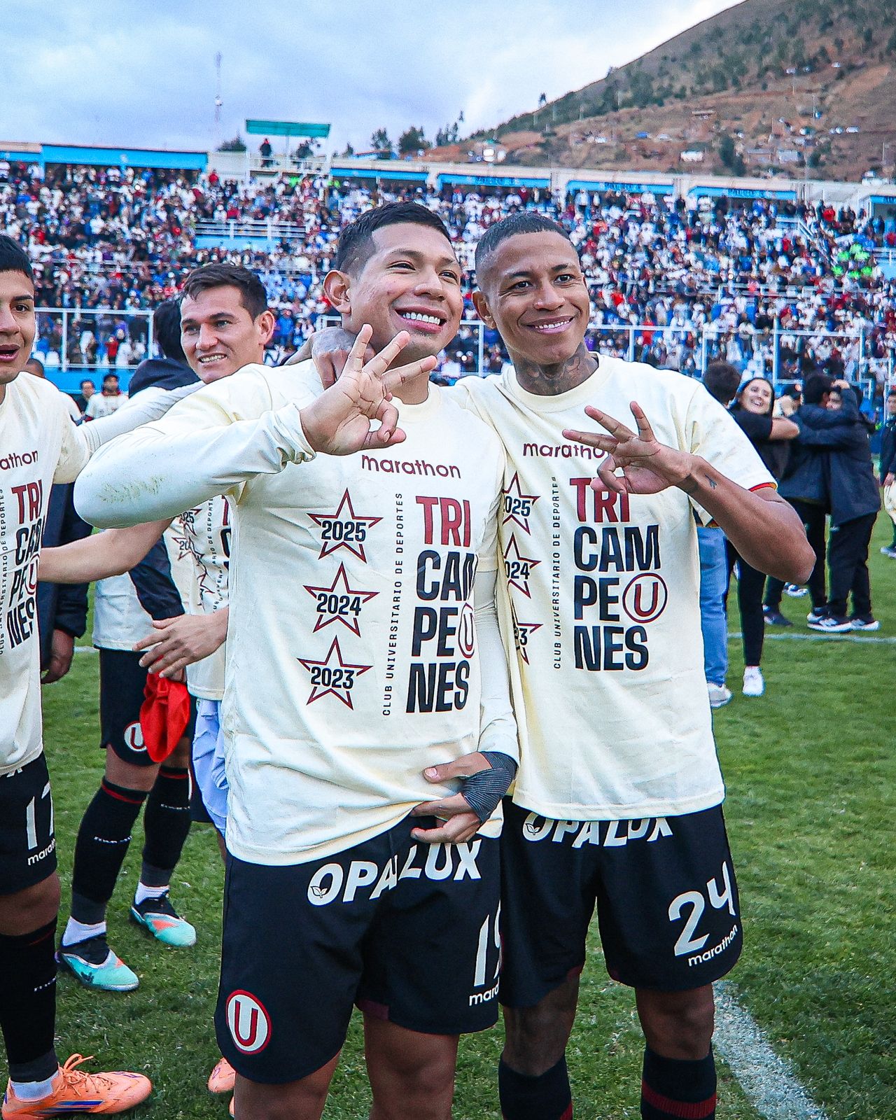 Celebra el pueblo crema. Universitario de Deportes venció 2-1 a ADT en Tarma y se proclamó ganador del Torneo Clausura Liga1 Te Apuesto 2025 y Tricampeón del fútbol peruano.